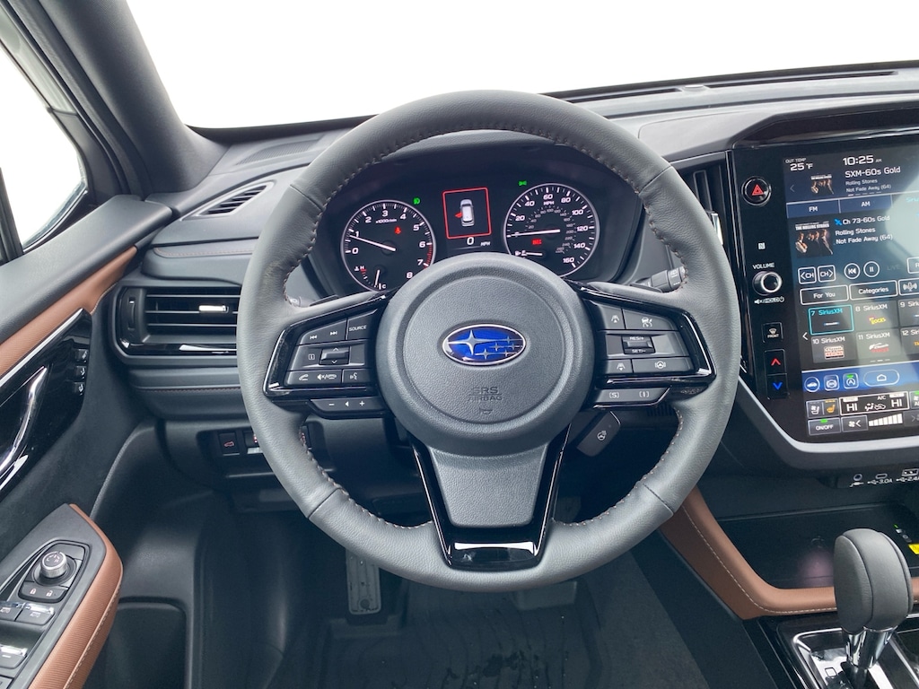It comes equipped with all the standard amenities for your driving enjoyment. Subaru prioritized fit and finish as evidenced by: tilt and telescoping steering wheel, a power rear cargo door, and leather upholstery. Smooth gearshifts are achieved thanks to the 2.5 liter 4 cylinder engine, and for added security, dynamic Stability Control supplements the drivetrain.