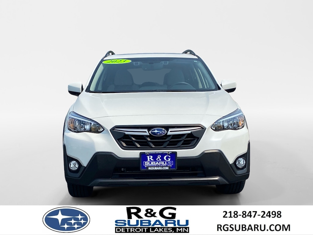 2023 Subaru Crosstrek Premium with AWD, power moonroof, blind spot detection, passive locks, back up camera, rear cross traffic alert, power driver seat, eye sight, lane keep, lane detection, rear seat back protector, auto dimming mirrors, bluetooth calling, cargo tray and more!